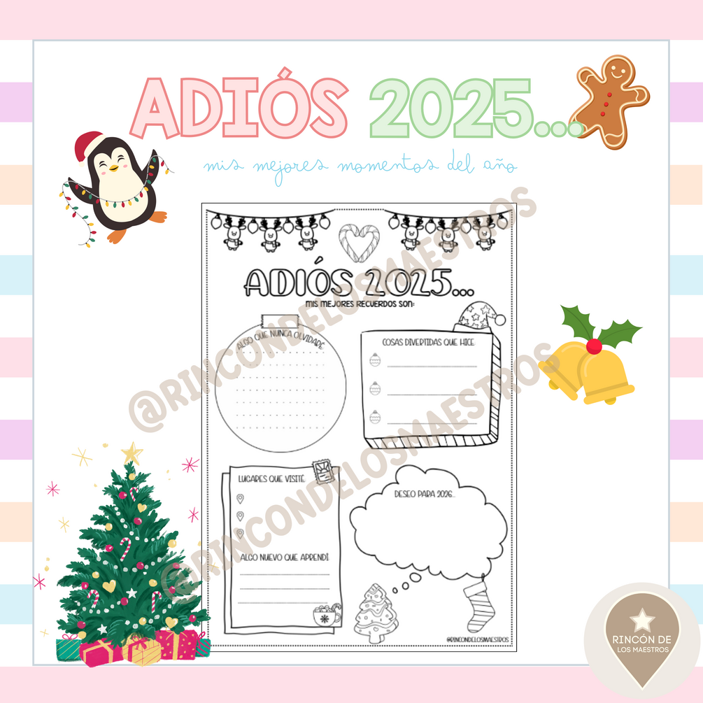 Ya queda poco para despedir este año 2025. Por eso, hoy os comparto este recurso tan especial para trabajar en clase el cierre del año: “Adiós 2025”. Un material perfecto para reflexionar, recordar los mejores momentos, valorar todo lo aprendido y dejar por escrito un deseo para 2026. 🌟